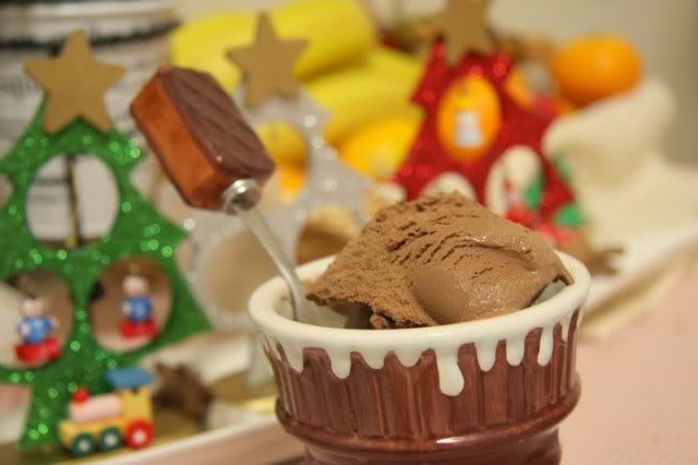 Sau khi hỗn hợp lạnh, đổ vào máy theo như quy trình làm kem bằng máy. Kem hoàn tất, đổ ra hộp có nắp, đậy kín cho vào ngăn đá vài giờ.