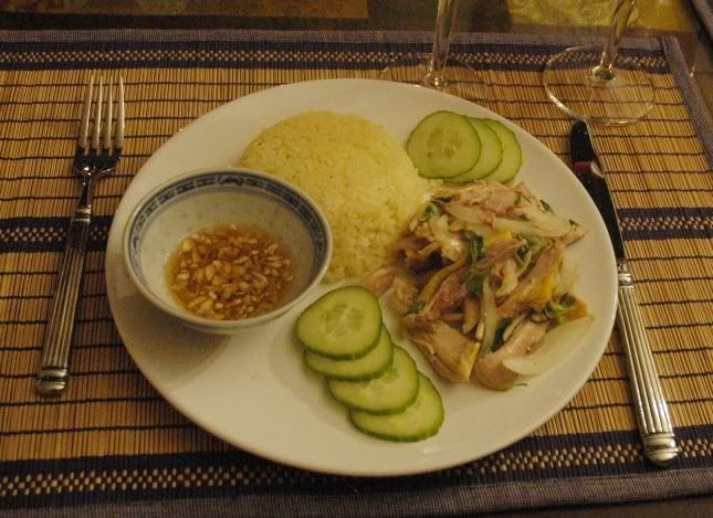 Bữa tối hôm qua của chúng tôi là như thế đấy. Có một điều là thịt gà hơi nguội, nên lưu ý hâm nóng thịt gà bằng microwave trước khi trộn.