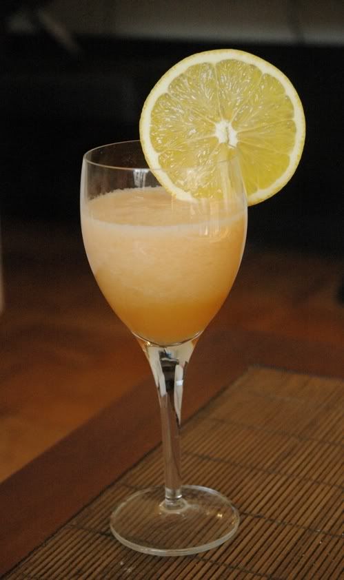 Pour into chilled glasses, decorate with slices of orange, and serve.