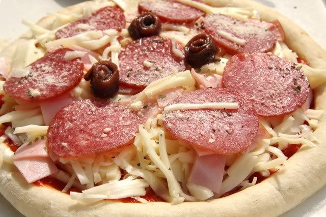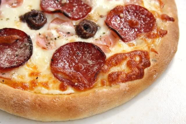 Pizza theo khẩu vị nhà rùa, với những gì cơ bản nhất: đế vừa, thành bánh dày vun cao để còn chứa được nhiều thứ, sốt cà đậm đà vừa miệng, thật nhiều pho-mát và cuối cùng là pepperonis, xúc xích khô.